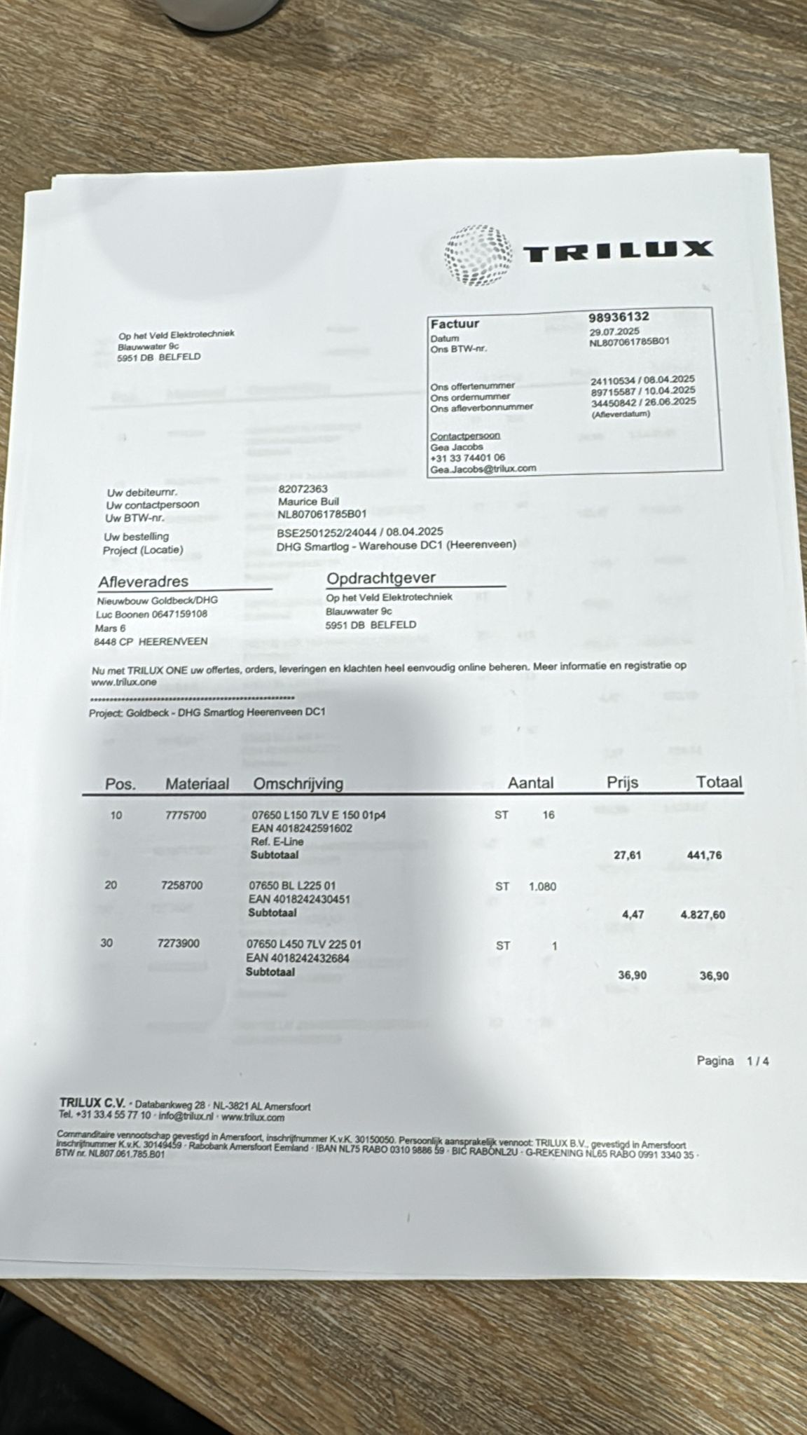 "value": "Project: Goldbeck - DHG Smartlog Heerenveen DC1. Contact: Gea Jacobs (+31 33 74401 06, Gea.Jacobs@trilux.com). Reference orders: 24110234/08.04.2025, 89715587/10.04.2025, 34450842/26.06.2025",