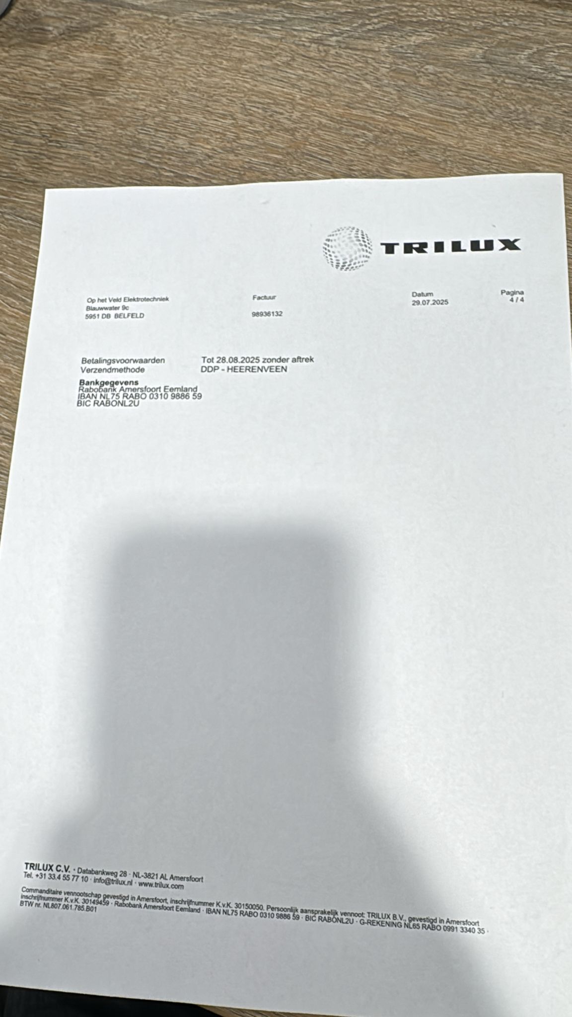 "value": "Betalingsvoorwaarden: Tot 28.08.2025 zonder afrek. Verzendmethode: DDP - HEERENVEEN",